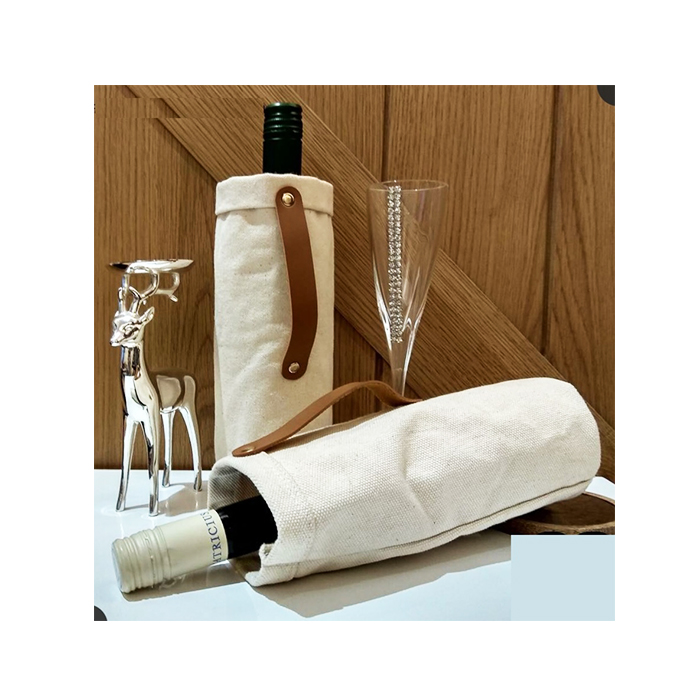Elegant canvas and Plant leather wine bottle holder can be used as a Wine bottle giveaway/Gift.