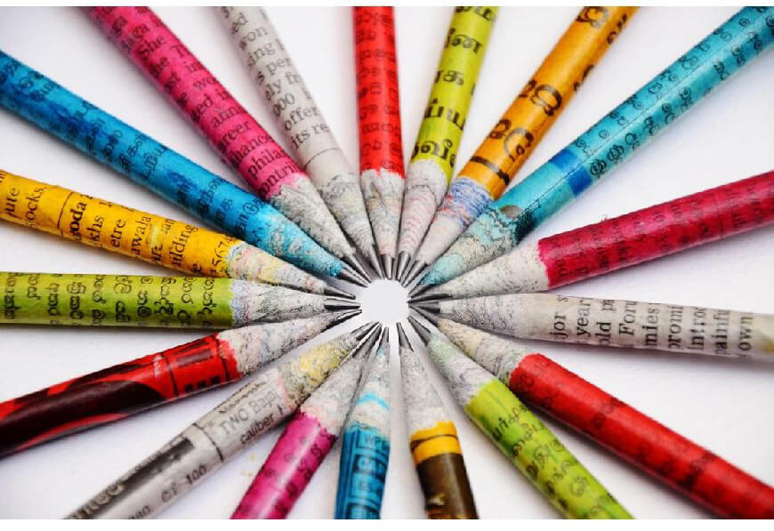 Newspaper Pencils- Made from recycled paper. Do try and personalize the pencils by creating art on them with your favourite colours!