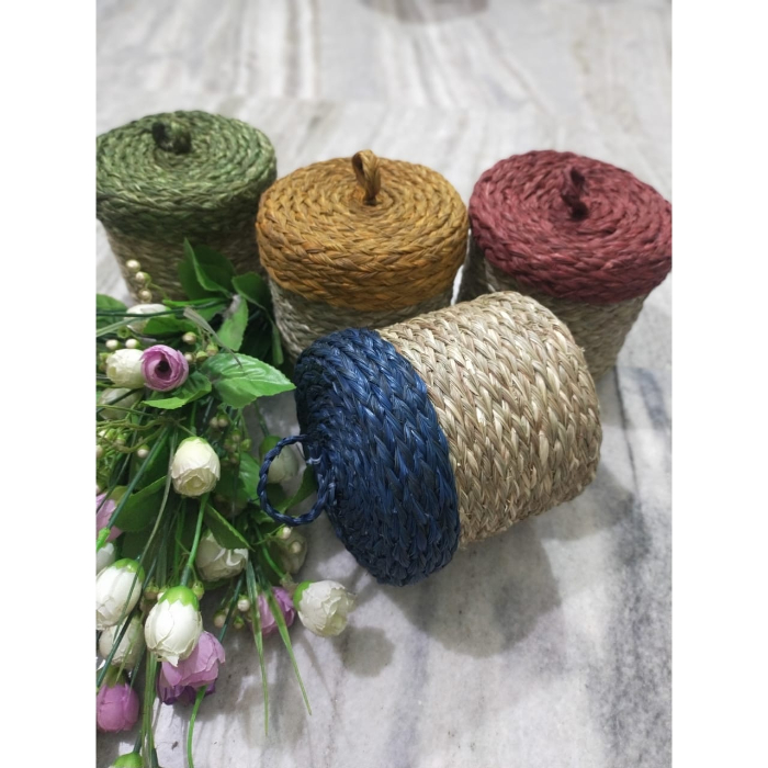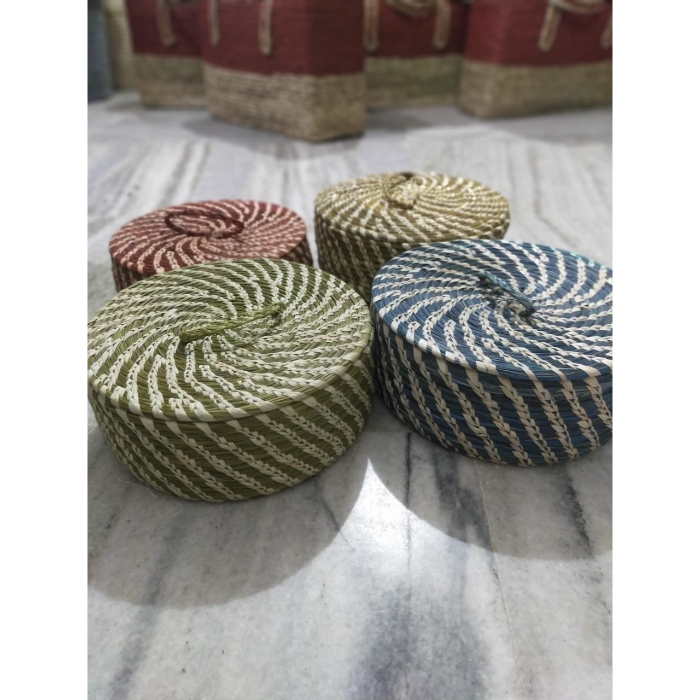 Sabai and dyed Jute woven basket. Eco-friendly, biodegradable, and Durable Material. A complete alternative to plastic trays.