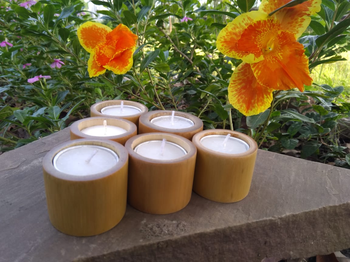 Bamboo Candle Holder, Best when Light in Night, Can be used for outdoor Decoration, Dinner Tables, Resorts, Spa. It has designed with Unique design