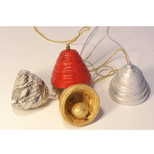 Christmas Bell coiled from Newspaper. Coated with eco-friendly non-toxic paint