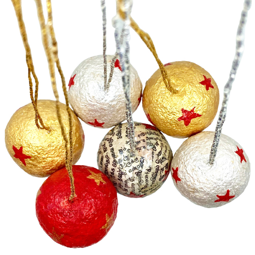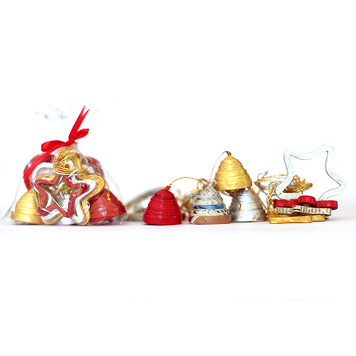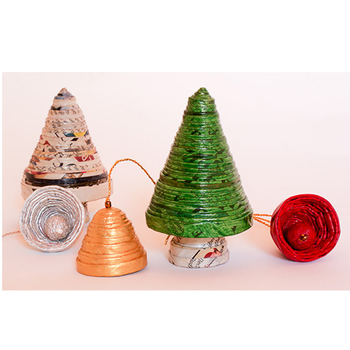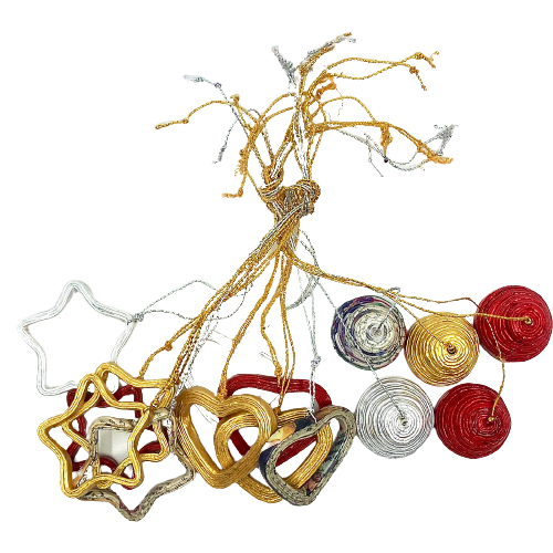 Christmas Ornaments coiled from Newspaper. Coated with eco-friendly non-toxic paint