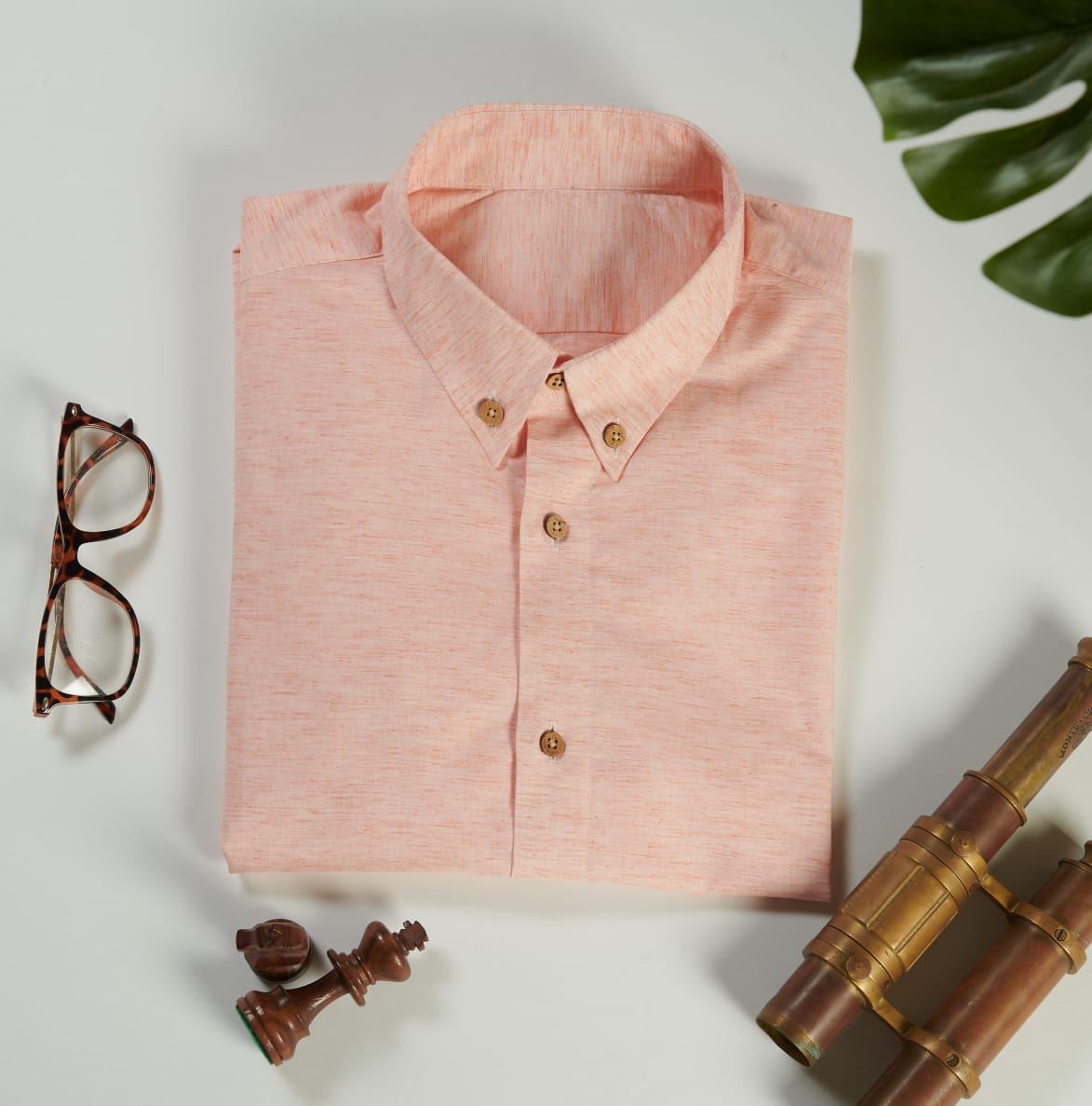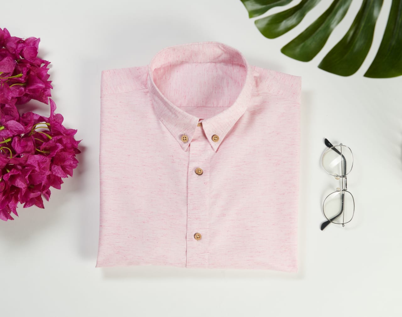 Pale Pink solid casual shirt, has a button-down collar, button placket, 1 pocket, long sleeves,