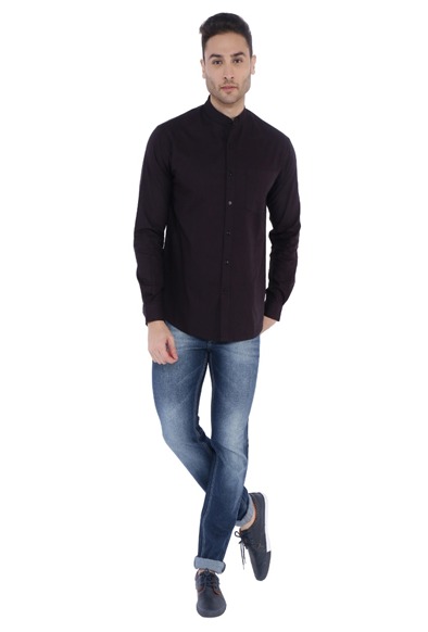 Black solid casual shirt, has a button-down collar, button placket, 1 pocket, long sleeves,