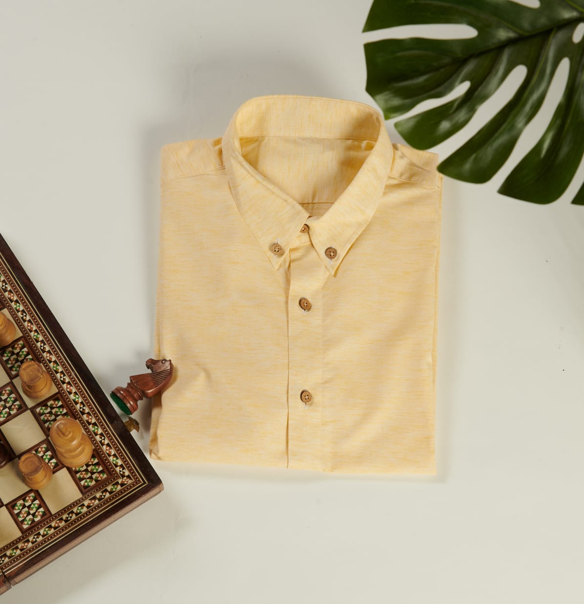 Lemon Yellow+ solid casual shirt, has a button-down collar, button placket, 1 pocket, long sleeves,
