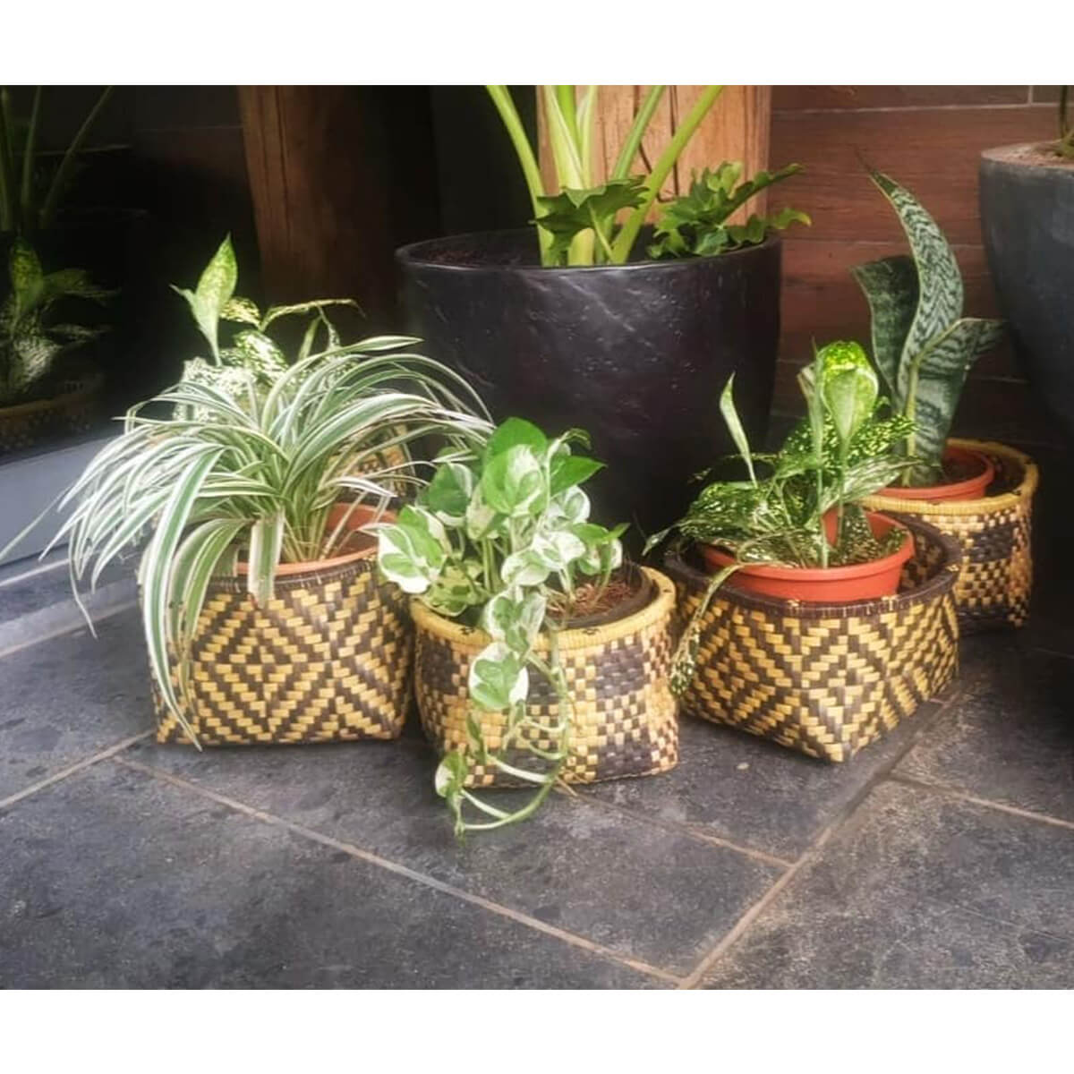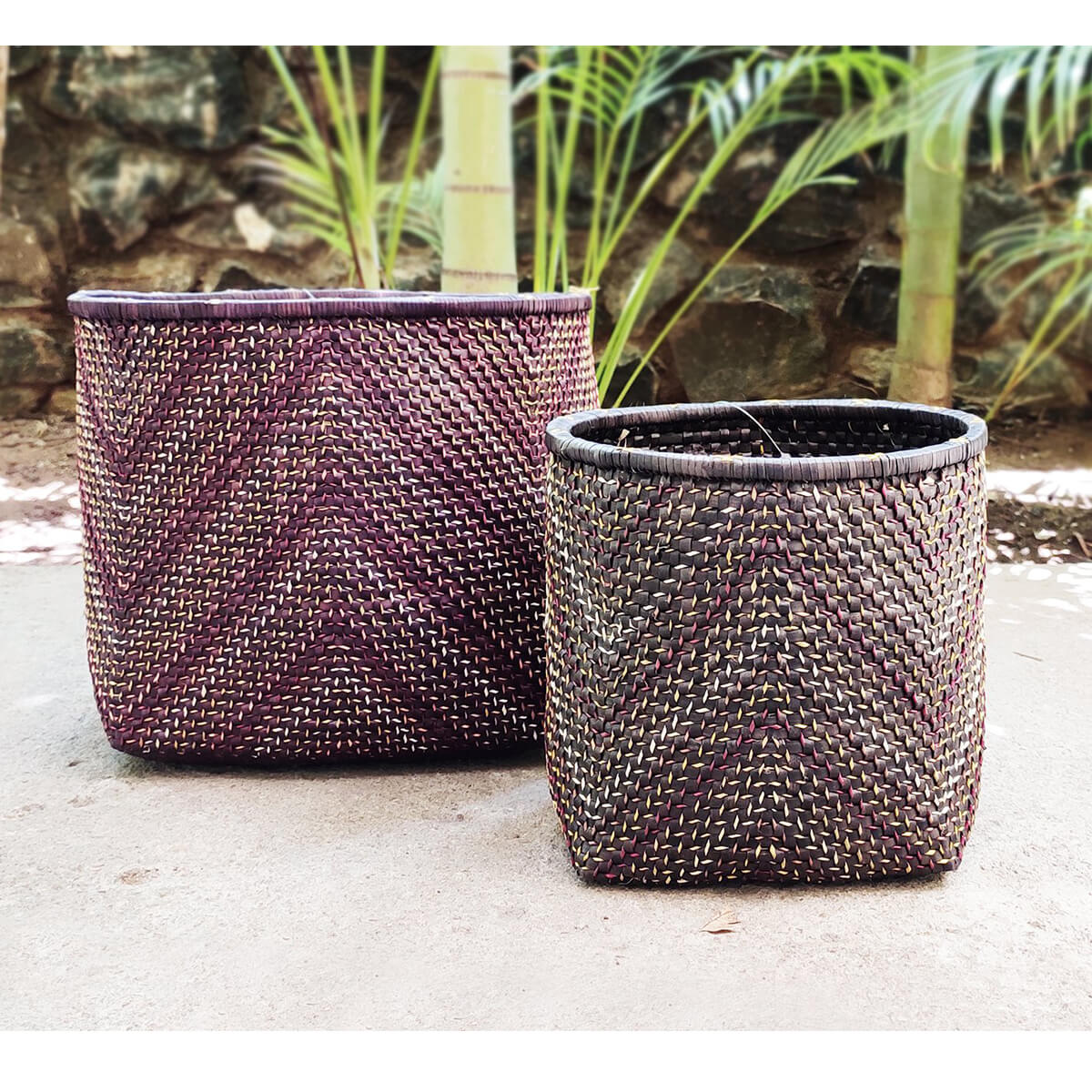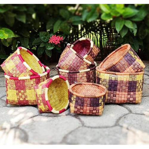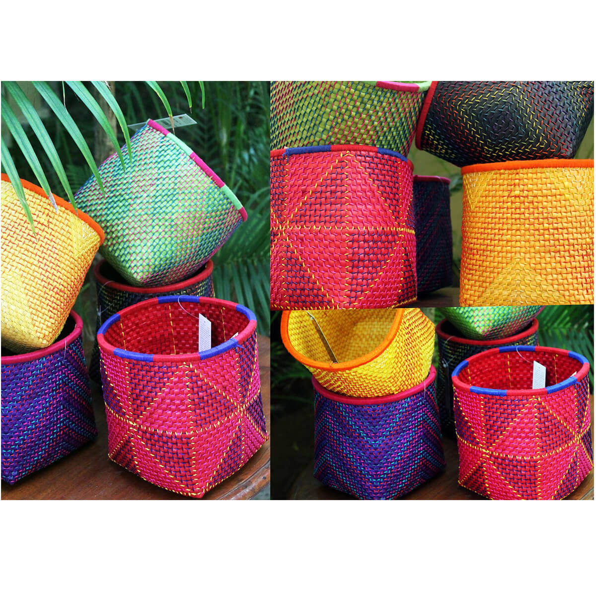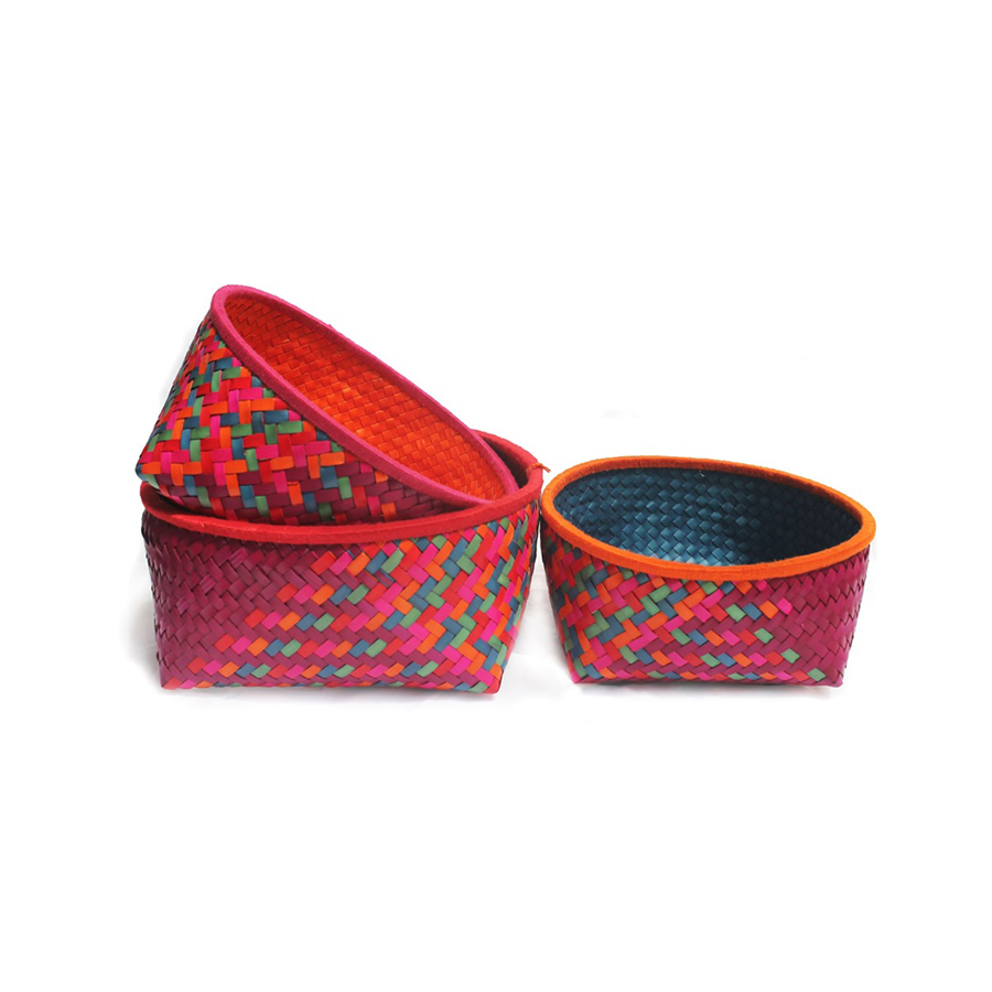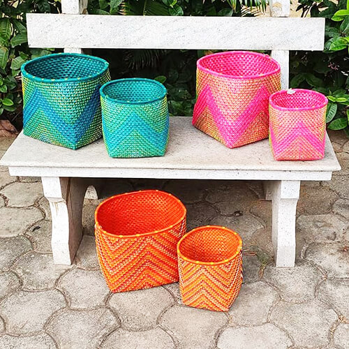 Palm Leaves strips are dyed, braided, plaited, and interlaced to create these beautiful Baskets.