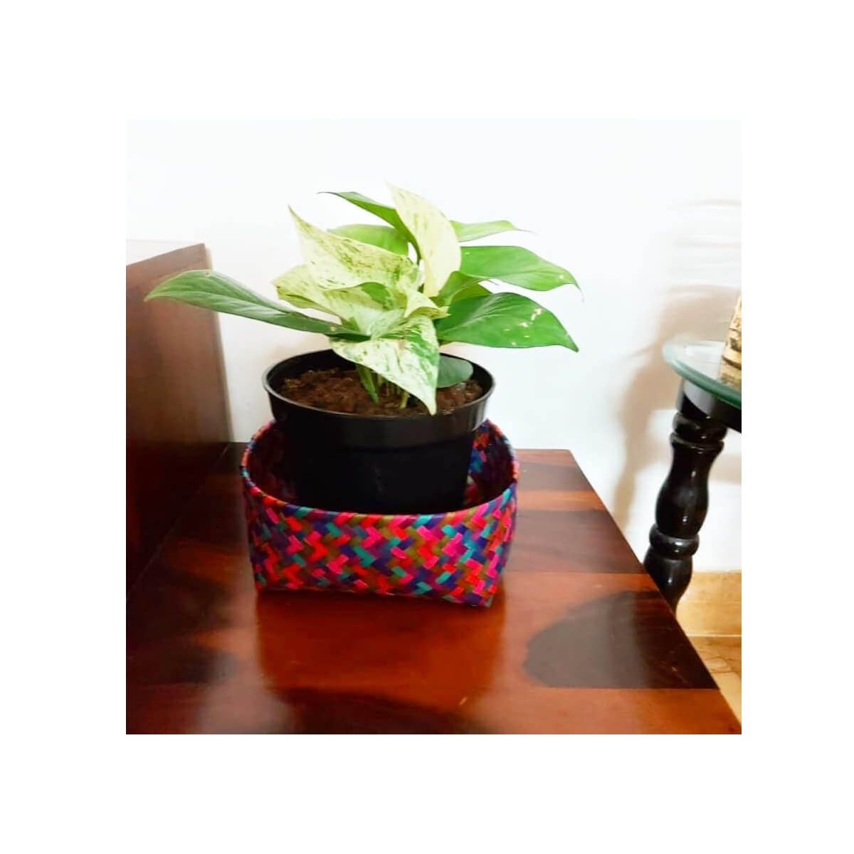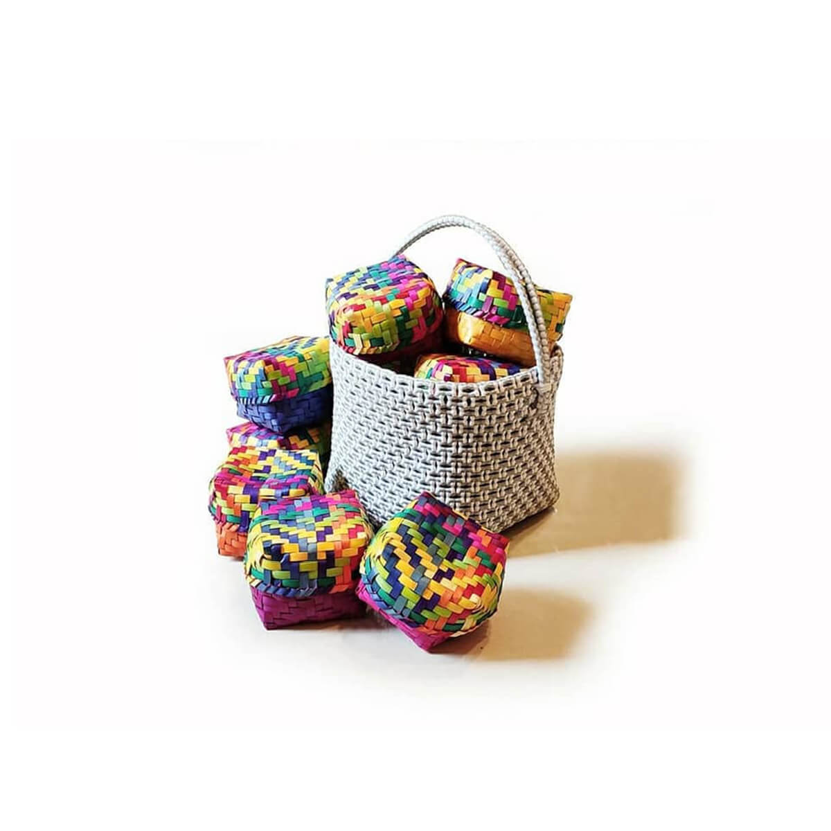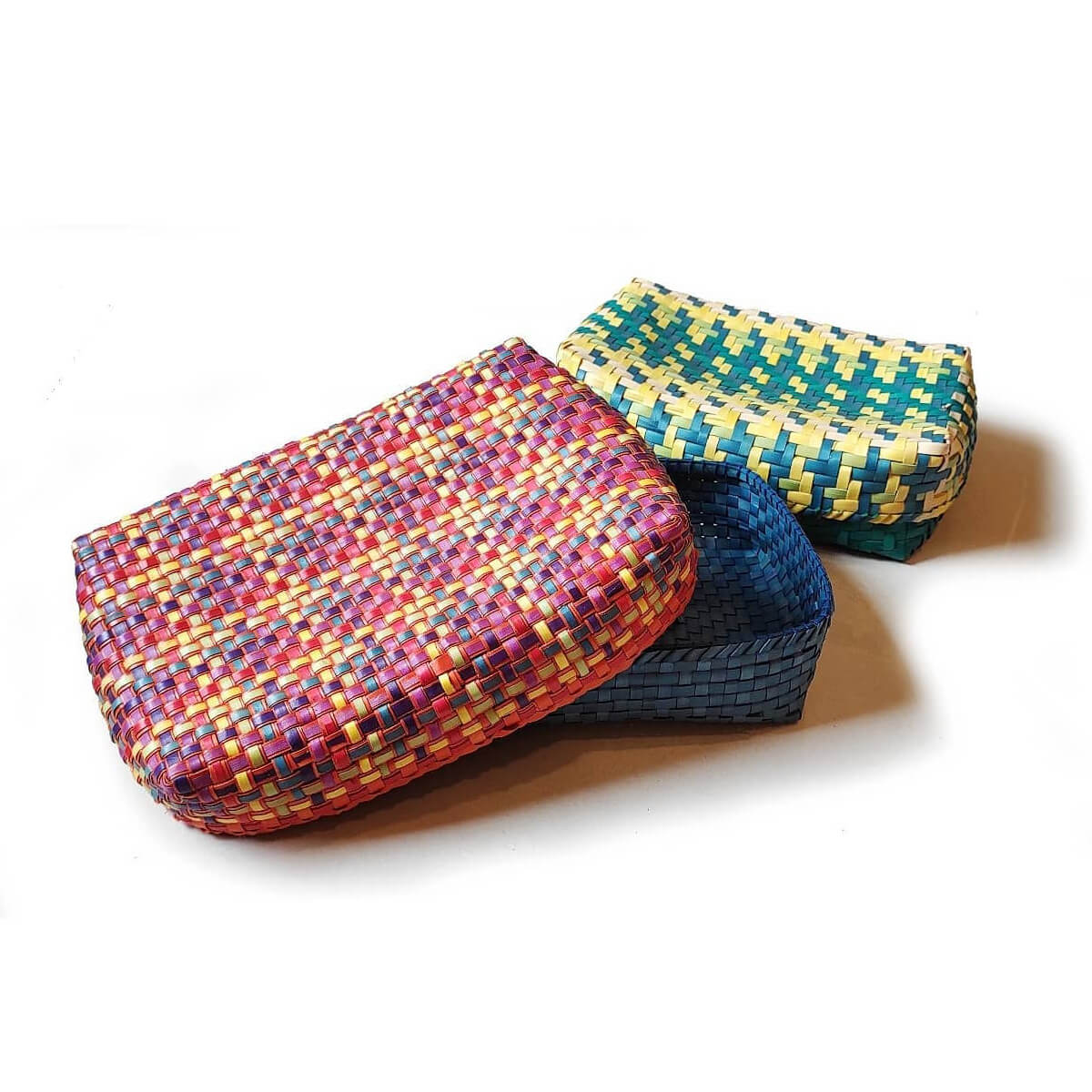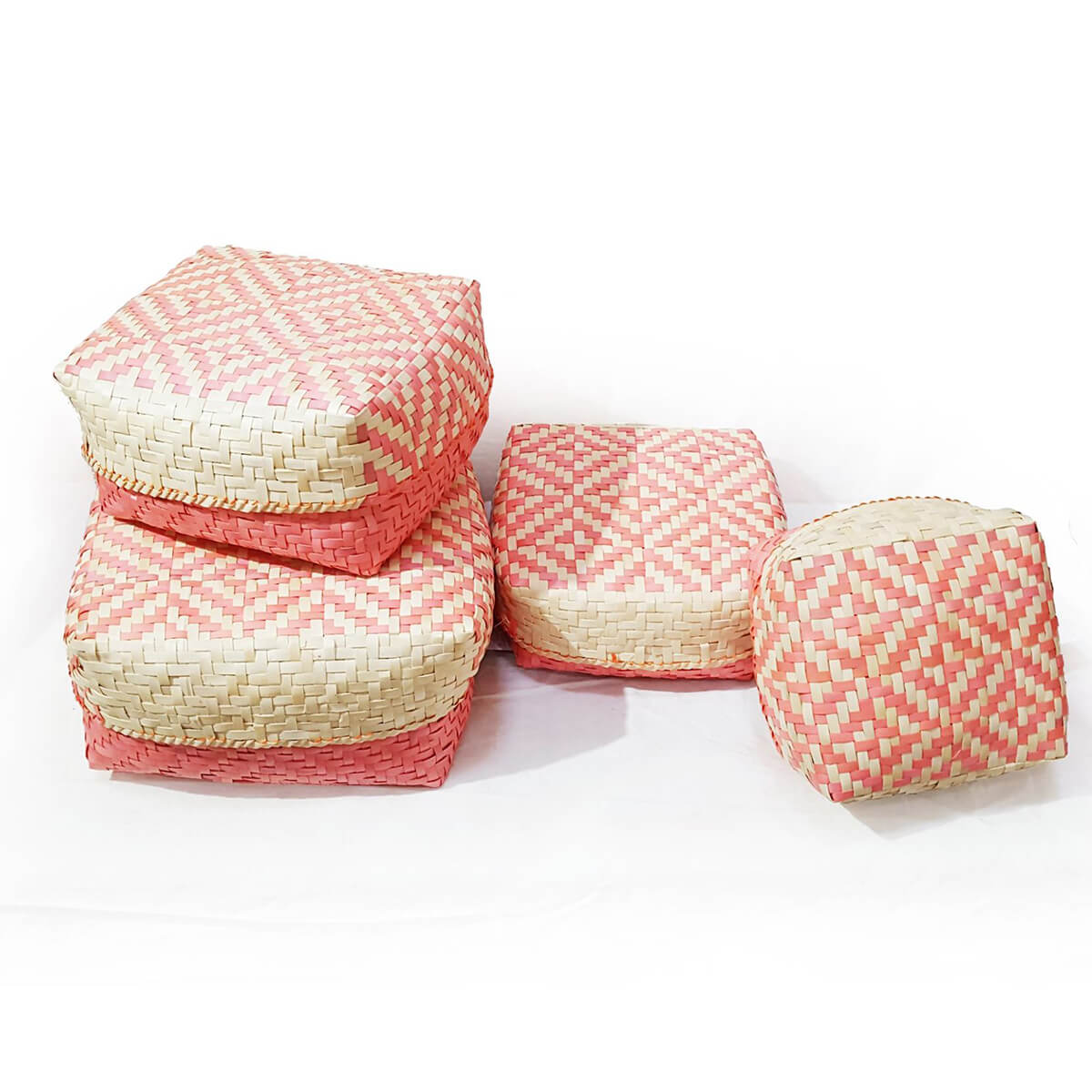 Colourful Palm Leaves are woven with the traditional weave pattern of Kottan to create these beautiful Saree Boxes. Can be used for storage as well as gifting.
