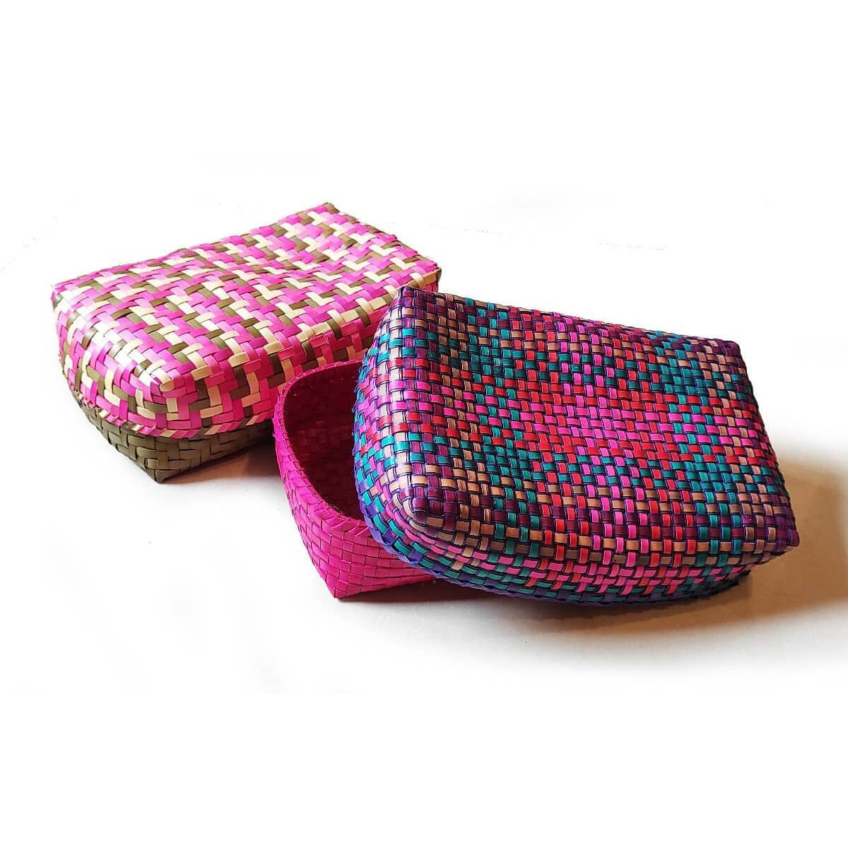 Eco-friendly, colourful handcrafted Palm Leaf Gift/Accessory Box.