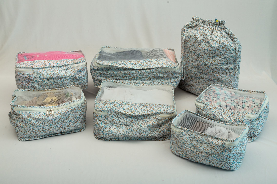 100% cotton printed multi-purpose travel Organizer set of 7 pcs Sturdy and Durable with high-quality zippers and stitching,