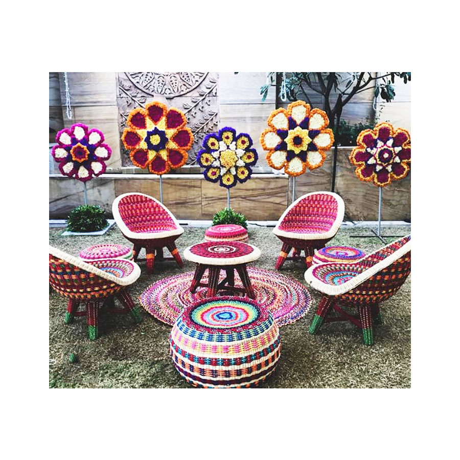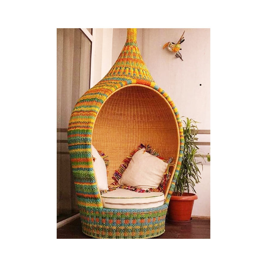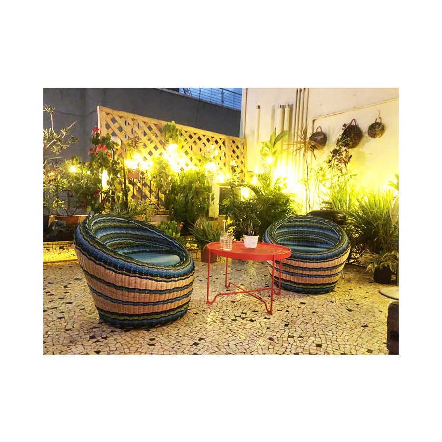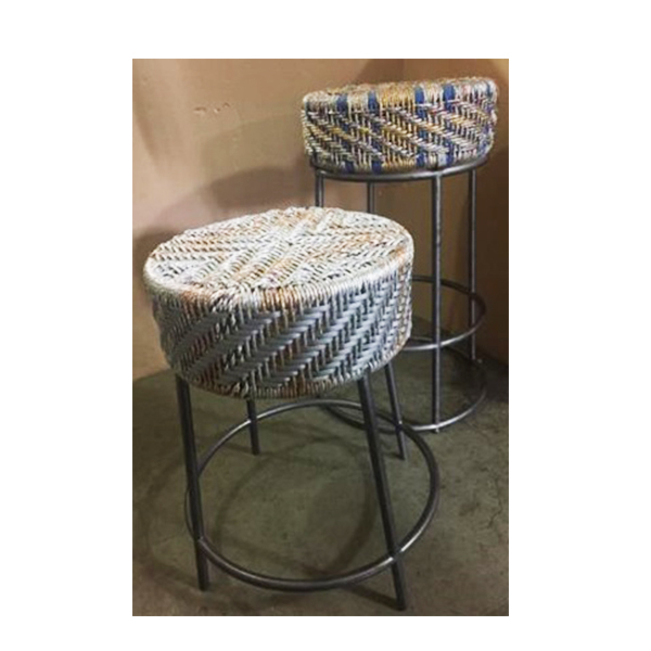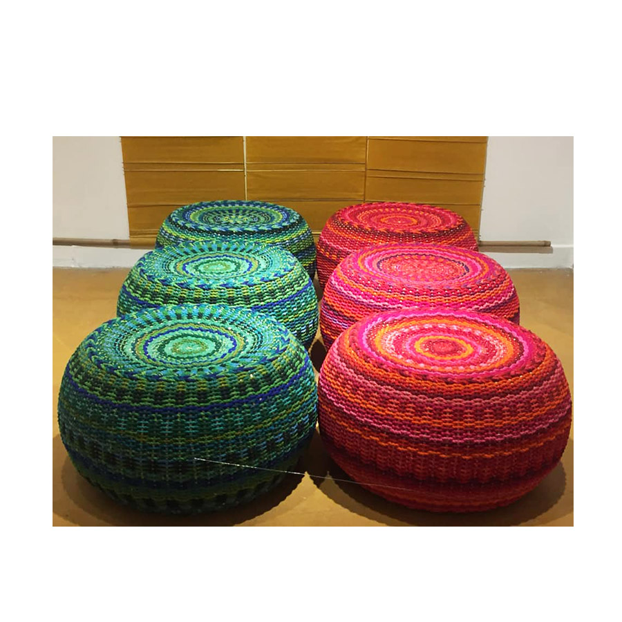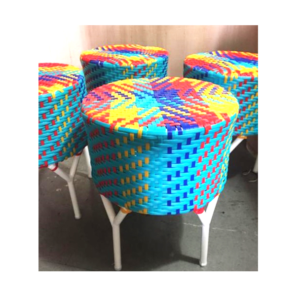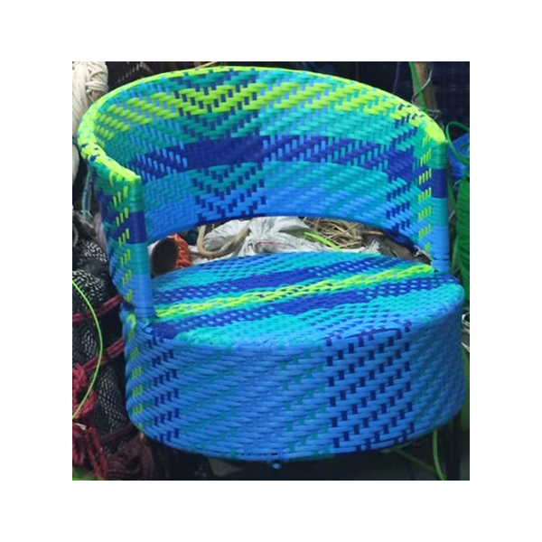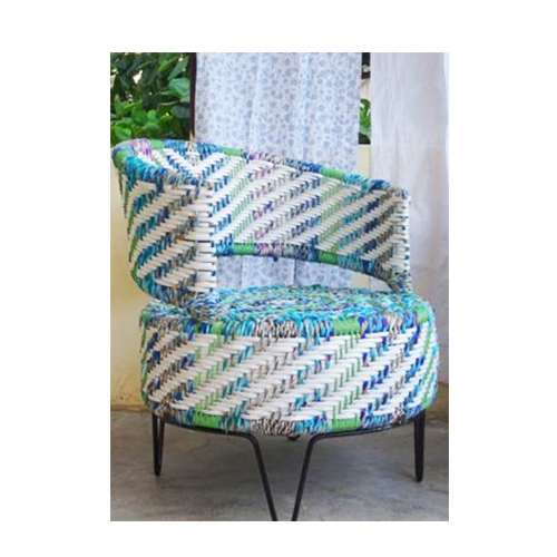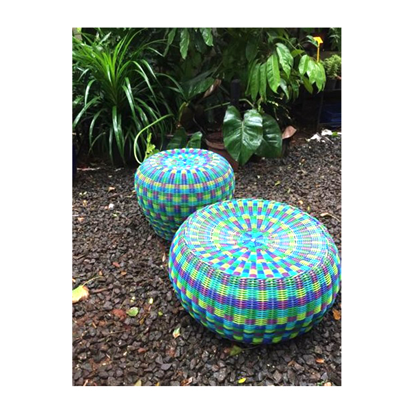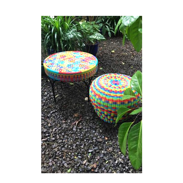Eco-friendly product. Made by vehicle tyres. It is woven with the waste cotton rope with a metal stand.